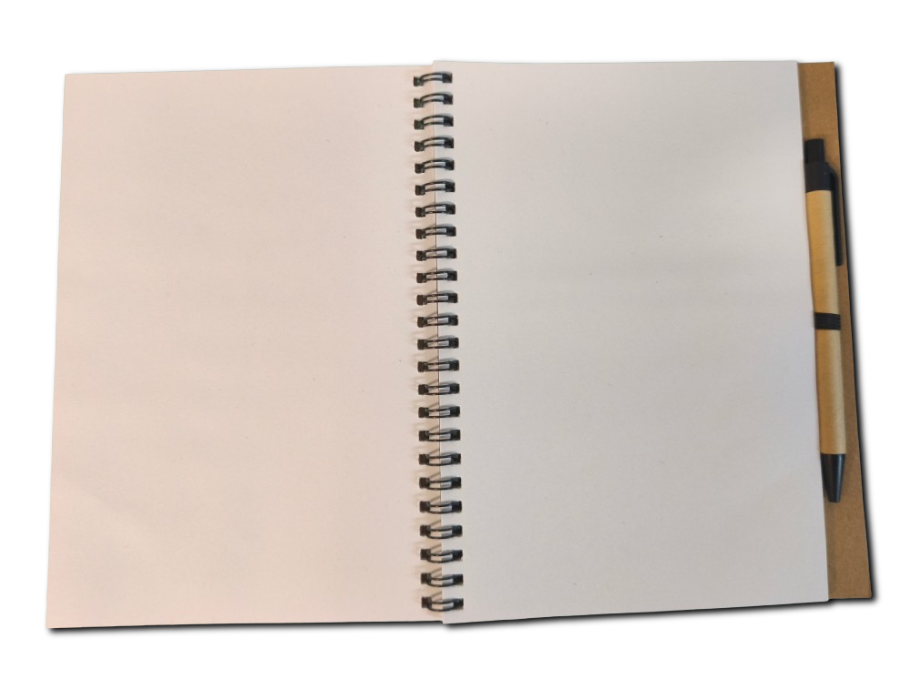 La copertina rigida in cartone riciclato protegge le pagine, la rilegatura a spirale permette un’apertura completa