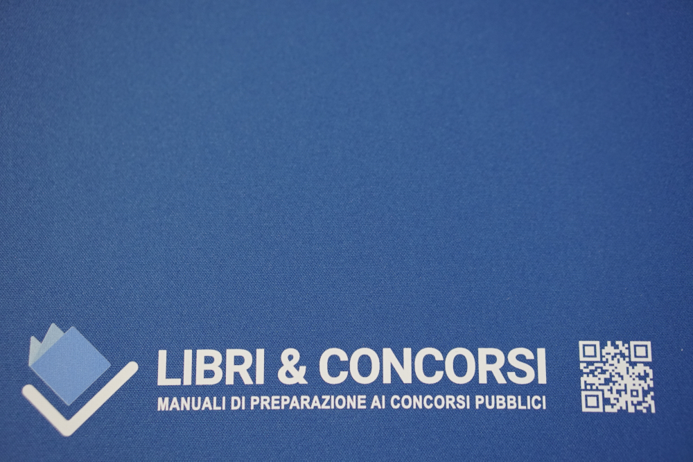 🎨 Il design piatto e minimale, nel colore blu istituzionale, richiama l’identità visiva di Libri & Concorsi. In basso sono presenti: